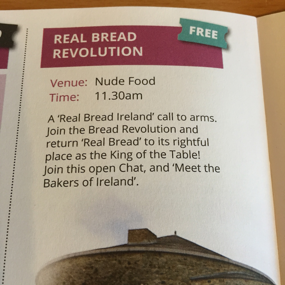 Then on the Sunday at 11.30 in Nude Food Louise Clarke is hosting a conversation and breaking of bread where Patrick Ryan (Firehouse Bakery) and Sarah Richards (Seagull Bakery) will share their thoughts on bread, sourdough and more in a celebration of good real bread. The writer of this blog post (Keith Bohanna) will also be there but a wee bit quieter than those 3 🙂
